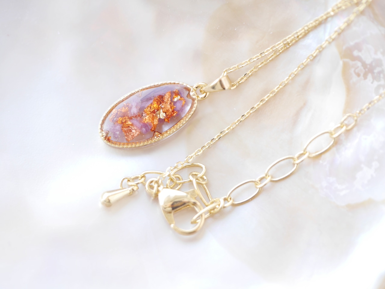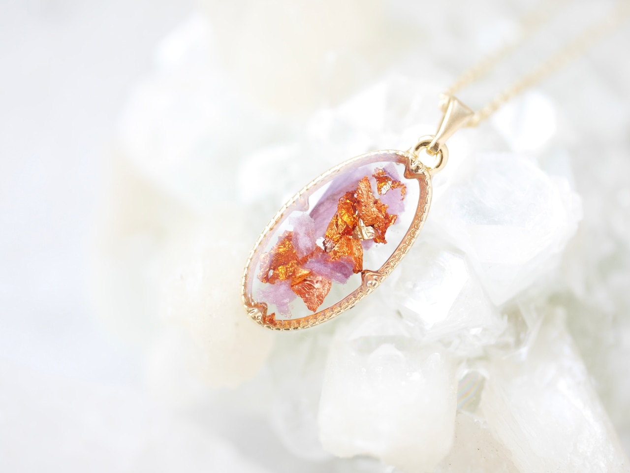 入手困難で貴重な蓮の花びらが入ったネックレスです。