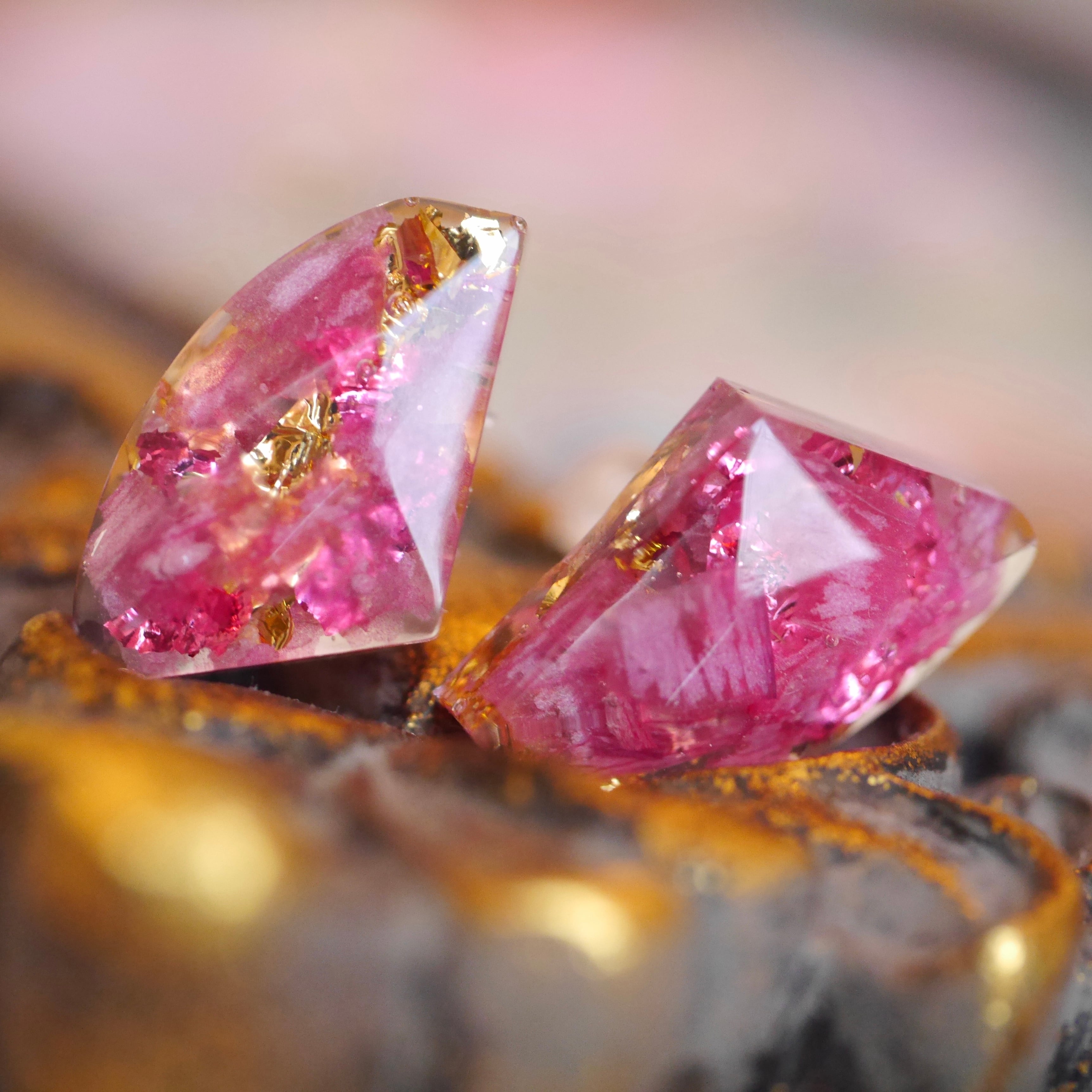 こちらは蓮の花びらを細かくして閉じ込めたシンプルなピアスとなっております。