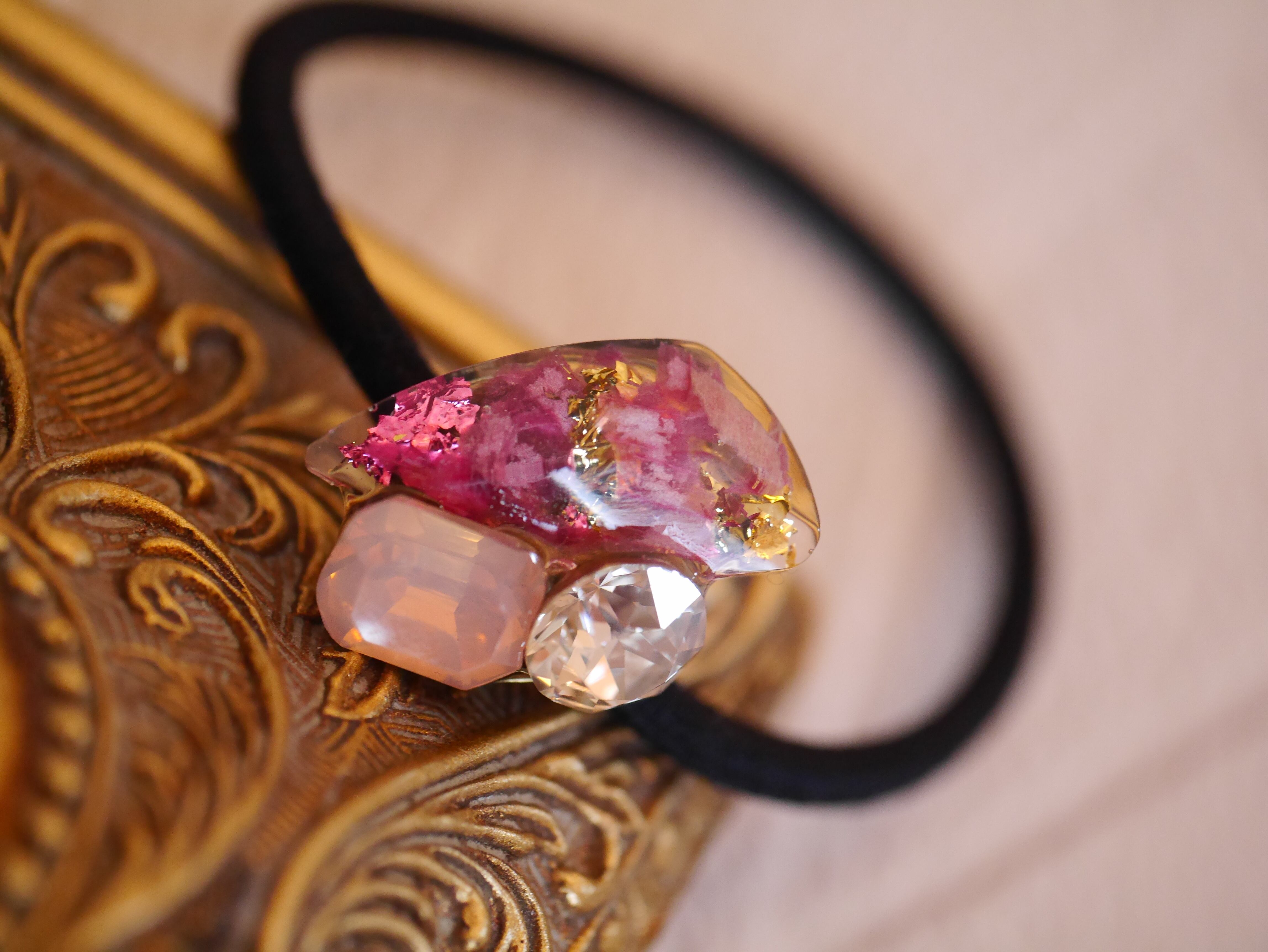 011蓮の花びら入りビジューヘアゴム