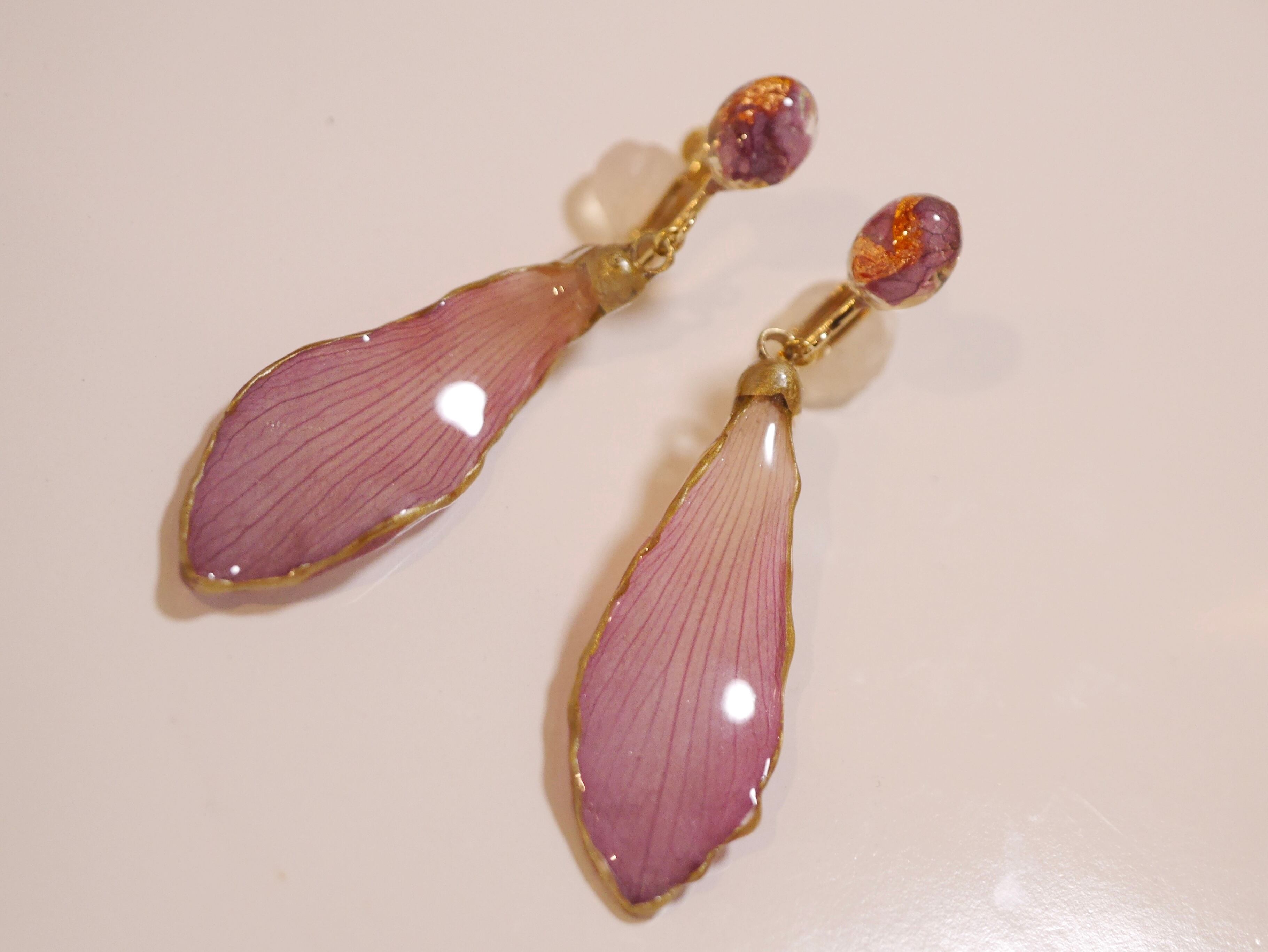 こちらは蓮の花びらそのままを、活かしたシンプルなイヤリングとヘアゴムとなっております。