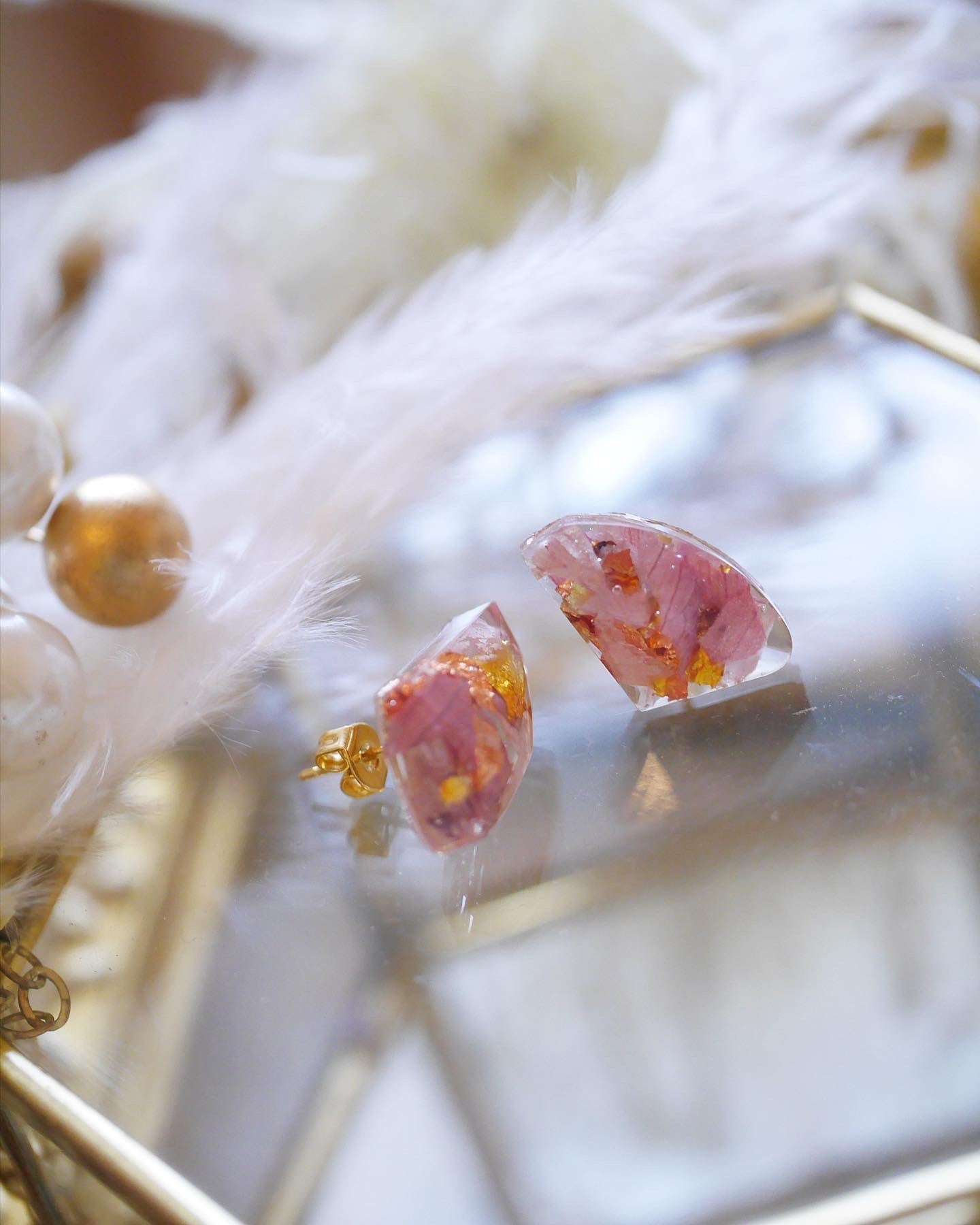 入手困難で貴重な蓮の花びらが入ったピアスです。