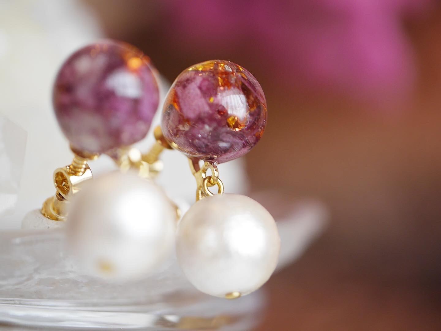 入手困難で貴重な蓮の花びらが入ったイヤリングです。
