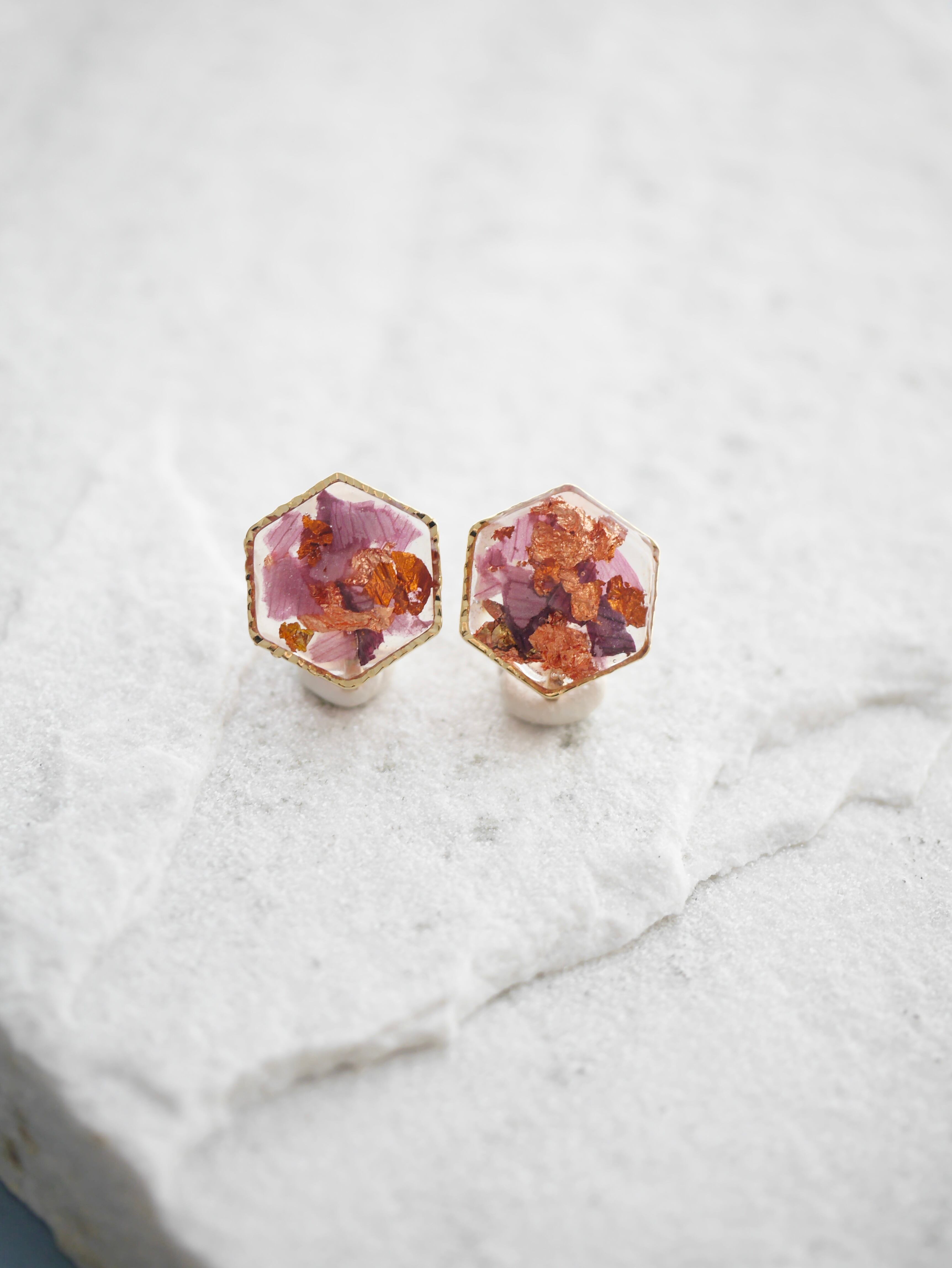 入手困難で貴重な蓮の花びらが入ったイヤリングです。
