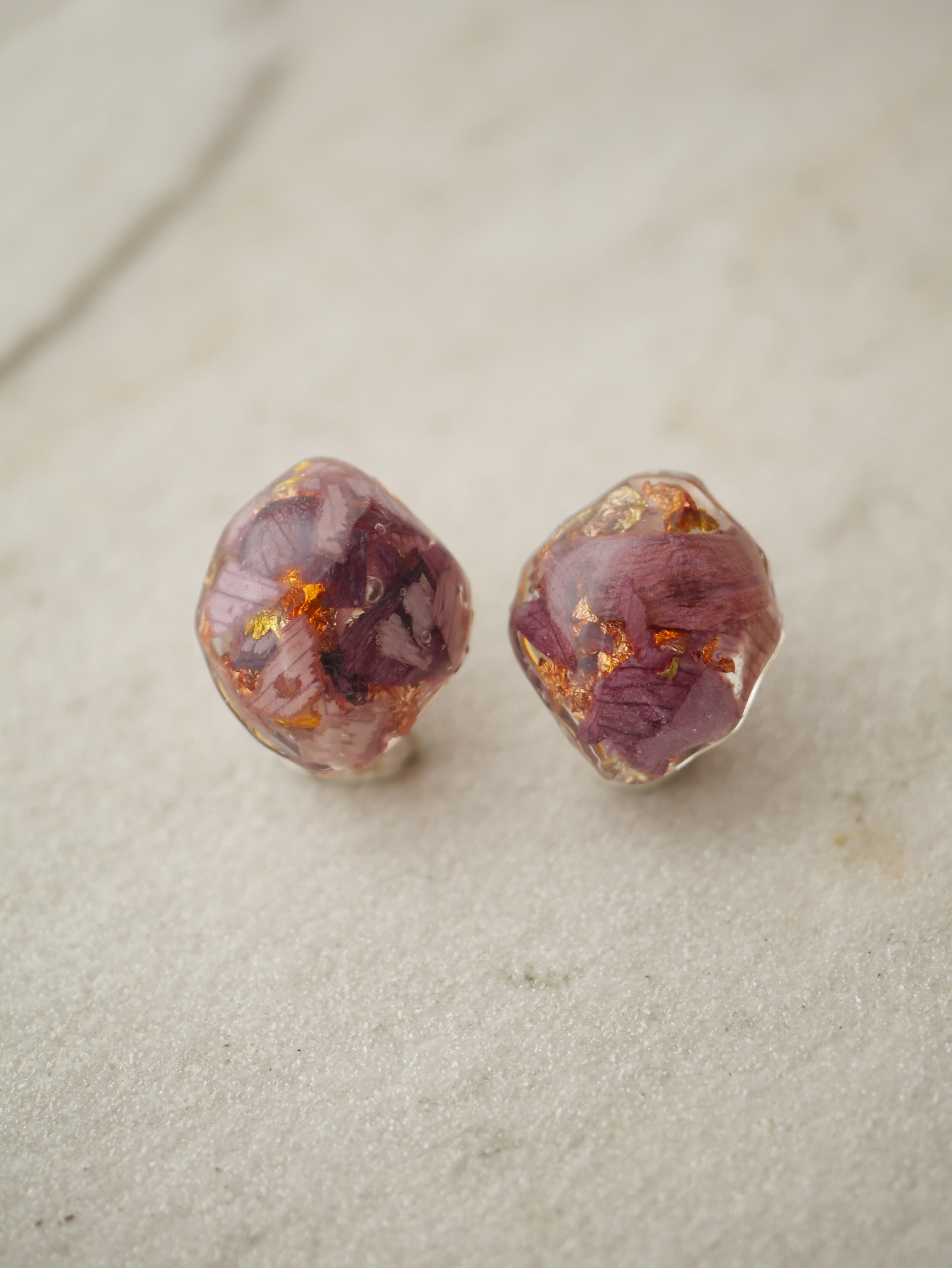 入手困難で貴重な蓮の花びらが入ったピアスです。